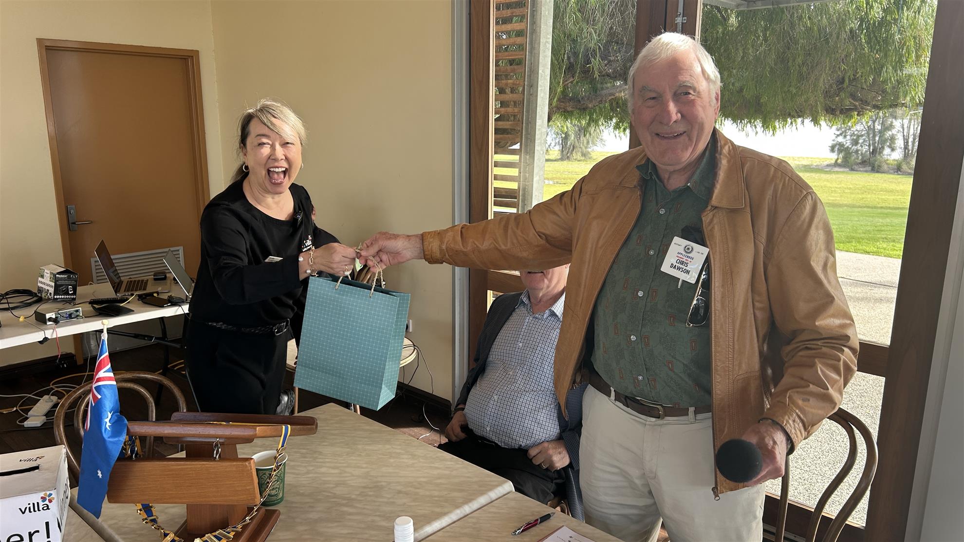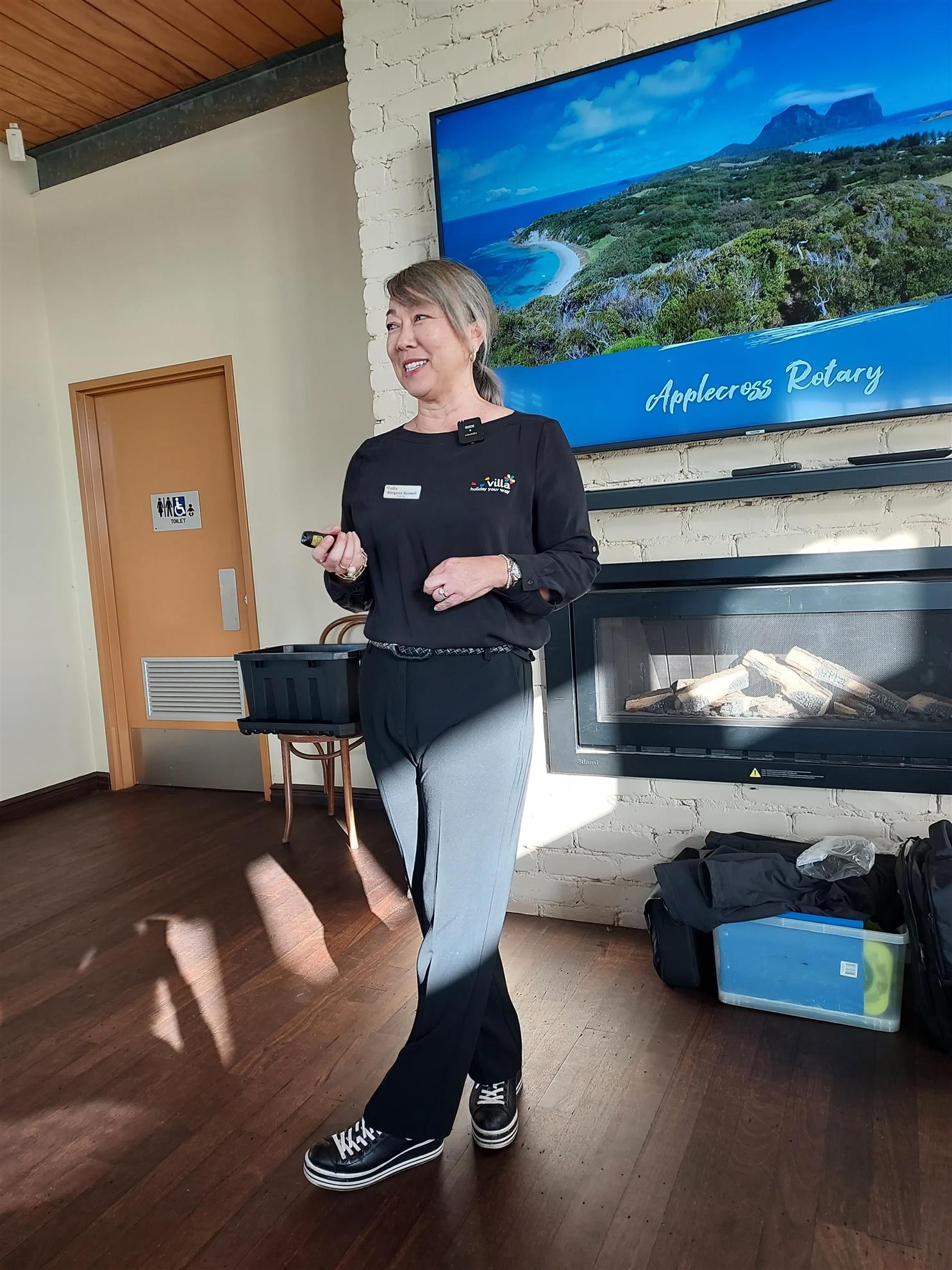 Our guest speaker was the charming and ever-smiling Margaret Buswell, the director of Villa Carlotta and also a director of Cinefest-OZ. Villa Carlotta has been a family-owned company for 33 years and Margaret entered the business when she was 23 (she even awarded a small prize to Ron for correctly guessing her age). Margaret’s parents bought the Villa Carlotta Hotel and in 1985 began connecting people from the Australind train in Bunbury to Busselton, offering them wonderful accommodation, food and warm hospitality. Margaret and her husband Troy bought the business and rapidly expanded from a mini bus to a 42-seater coach, with tours ranging from the south-west to all over WA and Australia, and eventually overseas. The business today is still part-owned by Margaret and managing director Matt Walker. Margaret still occasionally escorts tours, which she loves doing, but mainly acts in an advisory and accounting capacity. Villa Carlotta tours offers different levels of participation, marked by numbers of feet signifying the amount of activity required. One foot equals a relaxed tour, followed by two for moderate, three for active, four for highly action and five for challenging. Villa’s tours are inclusive of fares, accommodation, meals and sightseeing trips. A driver picks up Villa passengers from their home and conveys them to whatever is the mode of transport, be it bus, train or flight terminal. An experienced and knowledgeable tour guide is provided with each tour for the entire duration and after your holiday, in a really nice and appreciated finishing touch, you are given a loaf of bread and carton of milk when your driver drops you home again. Margaret said some of the most satisfying tours are for solo travellers, who make new friends on their holidays. She knows of three couples who have married after meeting on a Villa Carlotta tour so people get to know each other very well indeed! In our talk she focused on a Villa Carlotta trip which they do six times a year to Norfolk Island. The island has a most interesting history starting in 1788 when it was settled as a penal colony. In 1814 the British left, razing all the buildings in case the French had any ideas of settling there. The British came back in 1853 and rebuilt but again abandoned the island. Meanwhile, the HMS Bounty mutineers who had settled on Pitcairn Island had run out of food and supplies and petitioned Queen Victoria to move to Norfolk Island with their Tahitian womenfolk. In 1856 193 men and women started living on the island and today the people are mostly their descendants. They have their own language, which is a mash up of Old English and Tahitian. Villa conducts a nine-day tour of Norfolk Island with one night spent in Sydney or Brisbane, depending on flight fares, then it’s a short two-and-a-half hour flight to Norfolk Island, taking in two time changes. The island is only 8km x 5km and in the time Villa travellers are there, they will travel all the available roads. It is a sub tropical and beautiful place, with rugged cliffs. As there is so much to see and so much history, it appeals to young and old. One interesting aspect is the free-ranging cows who are registered individuals, with fences built to keep them out of properties rather than in. Activities include a breakfast bush walk to see plaques erected to honour Captain James Cook when he landed on the island in 1774 and 1788, celebrating the women of Norfolk, including one who became a freed convict and had 11 children, in turn leading to one of the biggest pioneer families in Australia, the Wonderland by Night tour where descendants of the Pitcairn mutineers tell stories, a marine boat tour, a progressive dinner by residents, the Pitcairn settlers restoration village, cyclorama, fish fry up, paddock to plate dishes and a tour of Government House. In one of the questions to Margaret after her talk, Kenn asked how the tour leaders connected the solo travellers, and Margaret explained it was the leader’s job to ensure no-one was left out and after dinner at night, there was entertainment or cards so that people didn’t just return to their rooms on their own. Margaret was an absolute delight and we were so lucky to have her as our speaker as she lives in Port Geographe and travelled to Perth for our Rotary Breakfast meeting. 'Winners are grinners' Margaret presenting her raffle prize to winner Chris Dawson' Margaret commented on our 'beautiful location' where we meet every Tuesday morning |