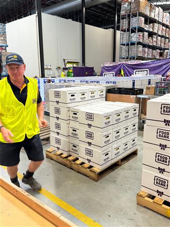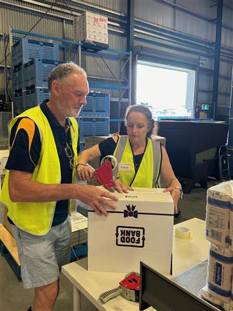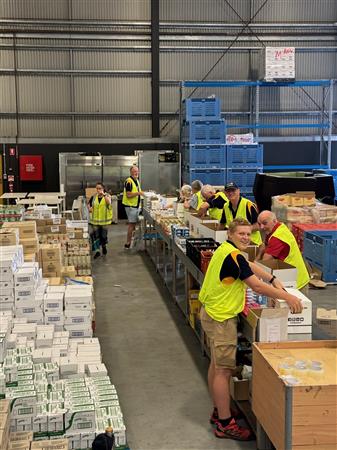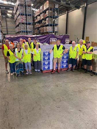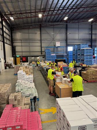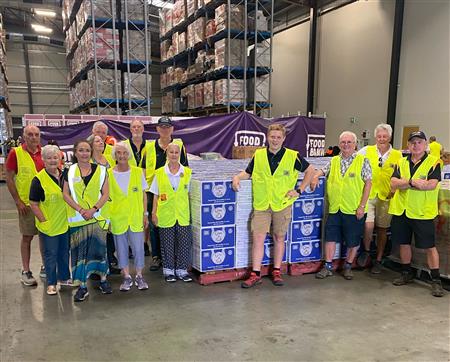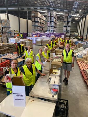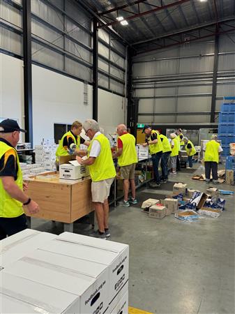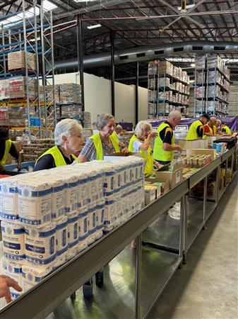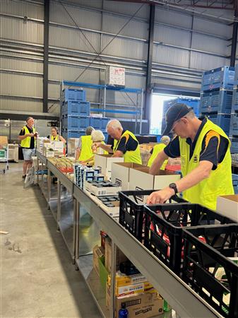 Club members packing hampers for GIVE A FEED initiative.