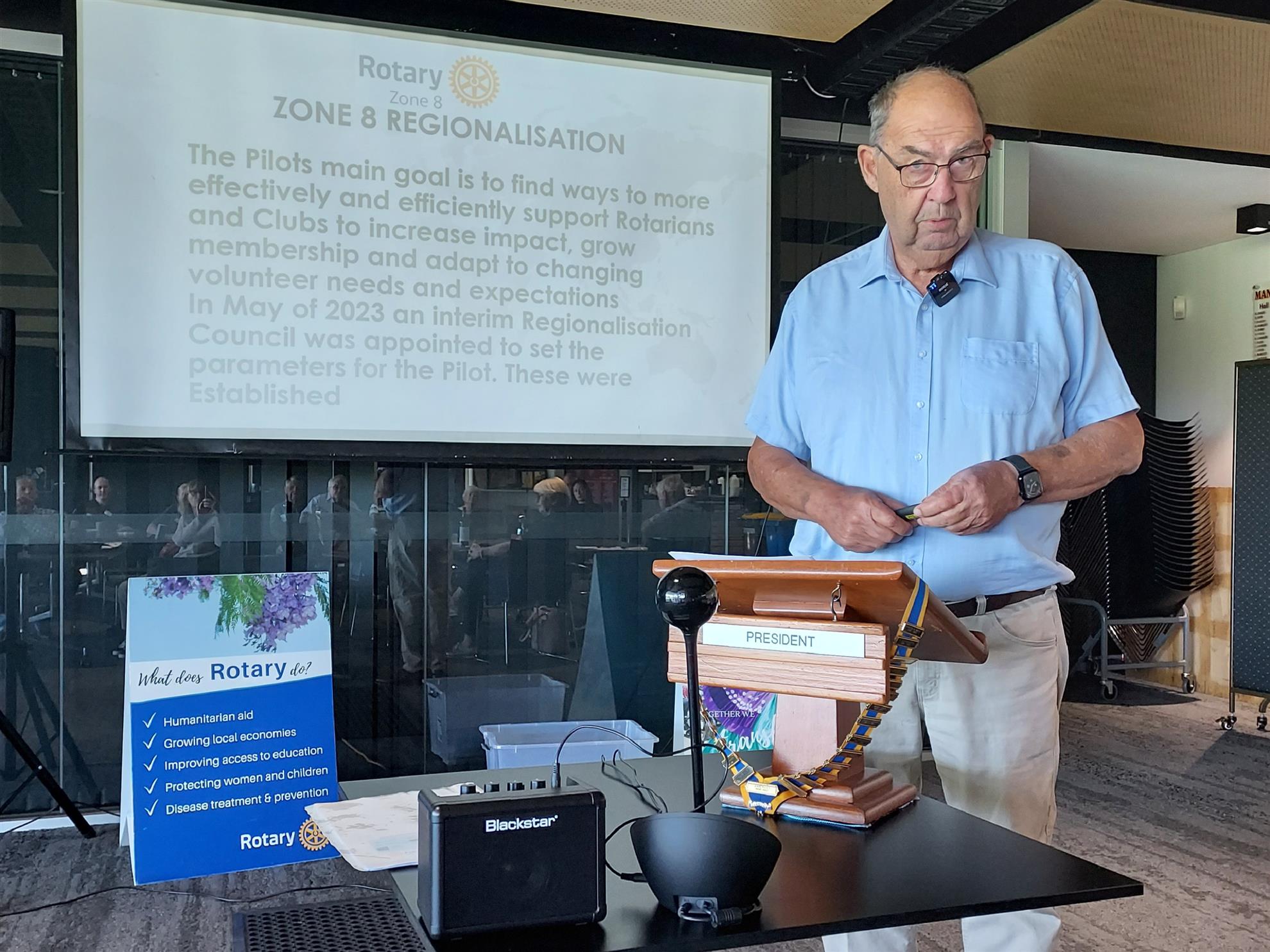 David was a knowledgeable, passionate and fearless Rotarian speaker, and brought home to us the spectre of declining membership and a renewed keenness to show people the community spirit and the great things that strong clubs can achieve for their local area and beyond. We need to push the Rotary message so that people know just what we can achieve. To do that, we need lots more young people, balanced with the wise heads and experienced heads of existing members.