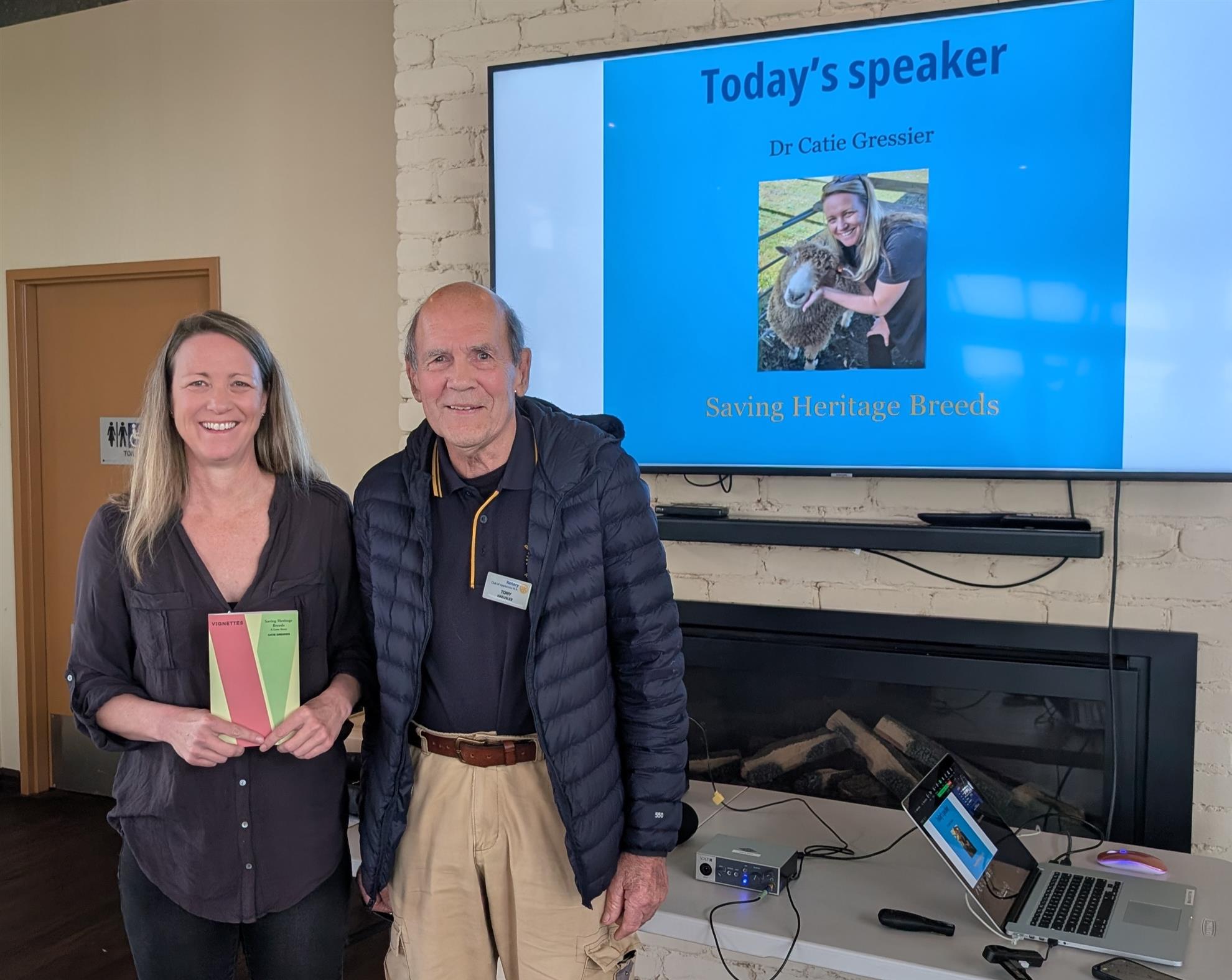 Guest Speaker: Catie GressierSaving Heritage Breeds - 'A Love Story' A Vignette by Katie Gessier Years ago, when I was an Animal Science lecturer at Muresk in the 1970’s, and Agribusiness became a “thing”; when Agribusiness Economists were preaching to farmers that they should “Get Big or Get Out”, a fellow lecturer was warning that the supply chain factory approach to farming had a problem that would eventually come back and bite us. He was an expert in Genetics and was concerned that the myriad of different breeds of pigs, sheep, cattle, poultry, which used to provide an interesting day-out at the Royal Show, would go the way of the dinosaur and their undiscovered genes would disappear, never to be recovered. These genes might have been vital for disease control when antimicrobial resistance renders useless all current antibiotics. Or when we needed to breed animals with better heat tolerance (ahh! Global Warming is coming!) or tick resistance, for example. How boring, when what we wanted to do was set up animal factories producing more milk or meat or eggs, with less food and less cost. Any ‘love’ for the animals disappeared, and soon, on the grain growing farms, there began to be NO animals at all. What a great idea. No need for internal fences, or water troughs or windmills to pump the water, or shearing sheds, or hay bales or fodder rolls. And no love! I don’t think anyone has ever kissed a tractor or hugged a combine harvester. ![]() So it was very refreshing to have Catie Gressier visit to give an impassioned argument for saving those odd-ball breeds of livestock. She has even written a book about it. A Vignette! Already, hundreds of livestock breeds and their specific genes, have become extinct, and the remaining gene pool is kept in cages, feedlots and sheds for their entire lives. The chickens bred for meat are ready to eat only 6 weeks after leaving the egg. They are basically all derived from just two breeds. According to Catie, the Holstein cattle that now dominate the milk industry, can trace their heritage to just 2 bulls. In the race for higher production and income, there has been a loss of genetic diversity, milk production, fertility, longevity, and increased disease susceptibility. Catie with her book, and “our” Tony Haeusler, a former Beef Cattle breeder, chaired her presentation. Maintaining biodiversity through many different breeds of livestock is basic common sense says Catie. Trouble is, Common Sense isn’t all that common! |