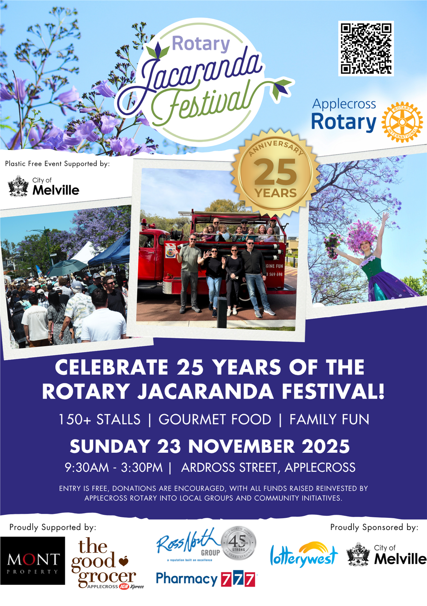 The Rotary Jacaranda Festival is a celebration of all things 'community' something that is at the heart of the work done by the Applecross Rotary as a Club throughout the year.